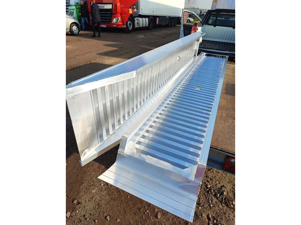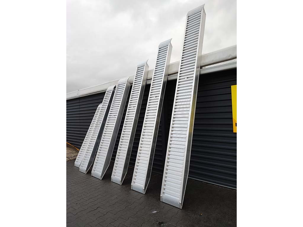 Die Rampen sind aus hochwertigem, korrosionsbeständigem Aluminium gefertigt, das auch unter rauen Bedingungen eine lange Lebensdauer gewährleistet. Die Oberfläche der Rampen ist mit rutschfesten Rillen versehen, die für Stabilität sorgen und ein Abrutschen verhindern und somit eine sichere Handhabung der Last gewährleisten.