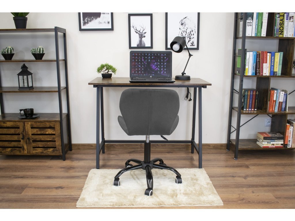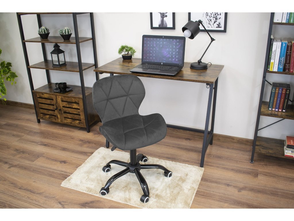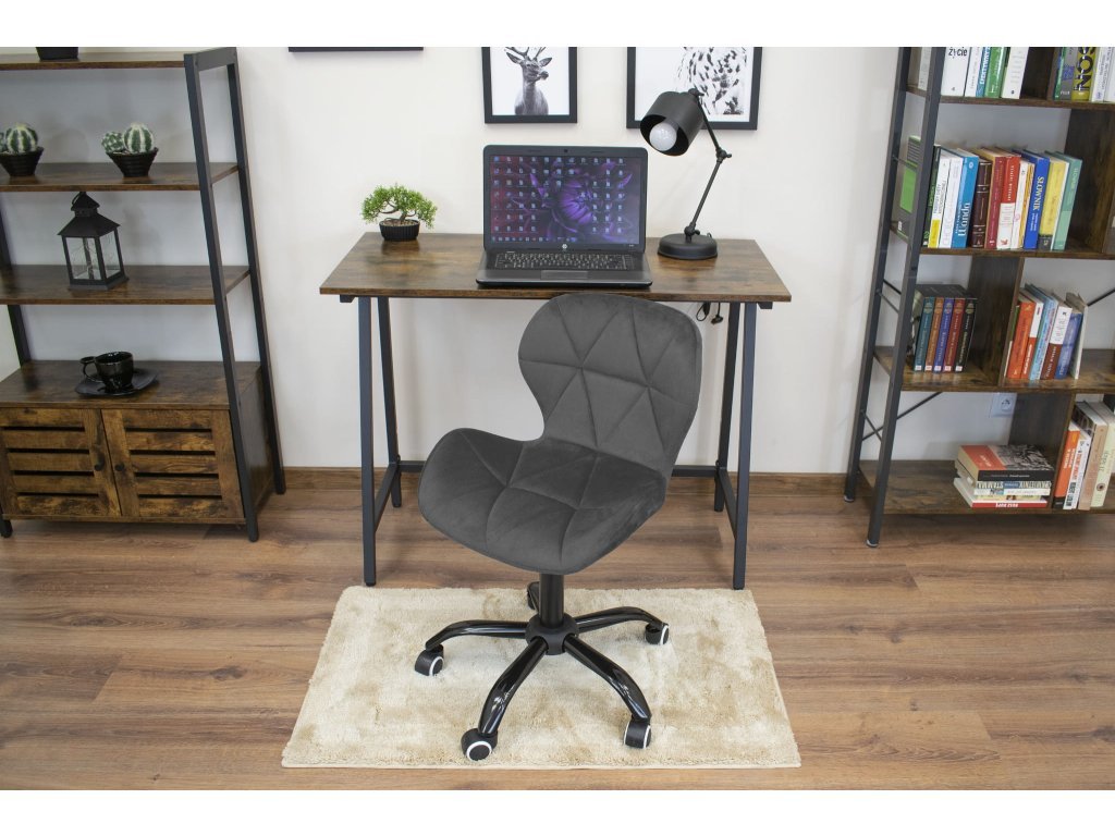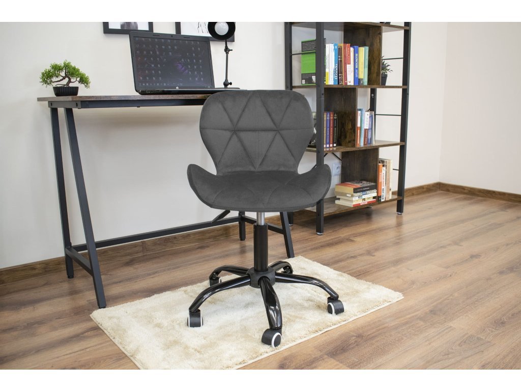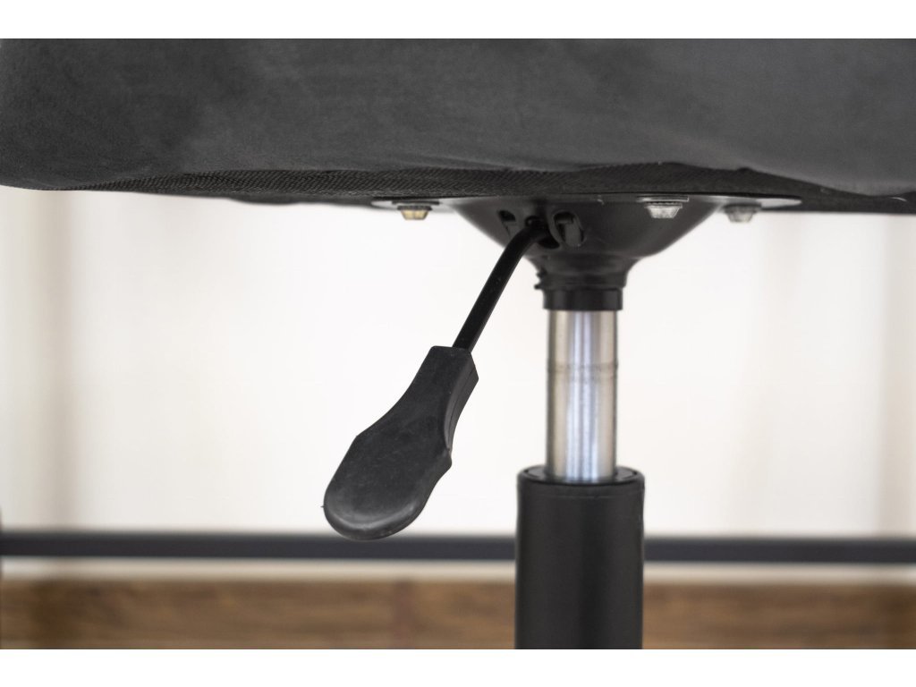 Der Stuhl ist aus pflegeleichtem Velours gefertigt, das sich leicht reinigen lässt und zugleich elegant wirkt. Die stabile 5-Stern-Basis aus Chrom mit langlebigen Rollen ermöglicht eine reibungslose Bewegung, ohne den Boden zu verkratzen. Die Sitzhöhe lässt sich ganz einfach über den Hebel unter dem Sitz individuell anpassen.