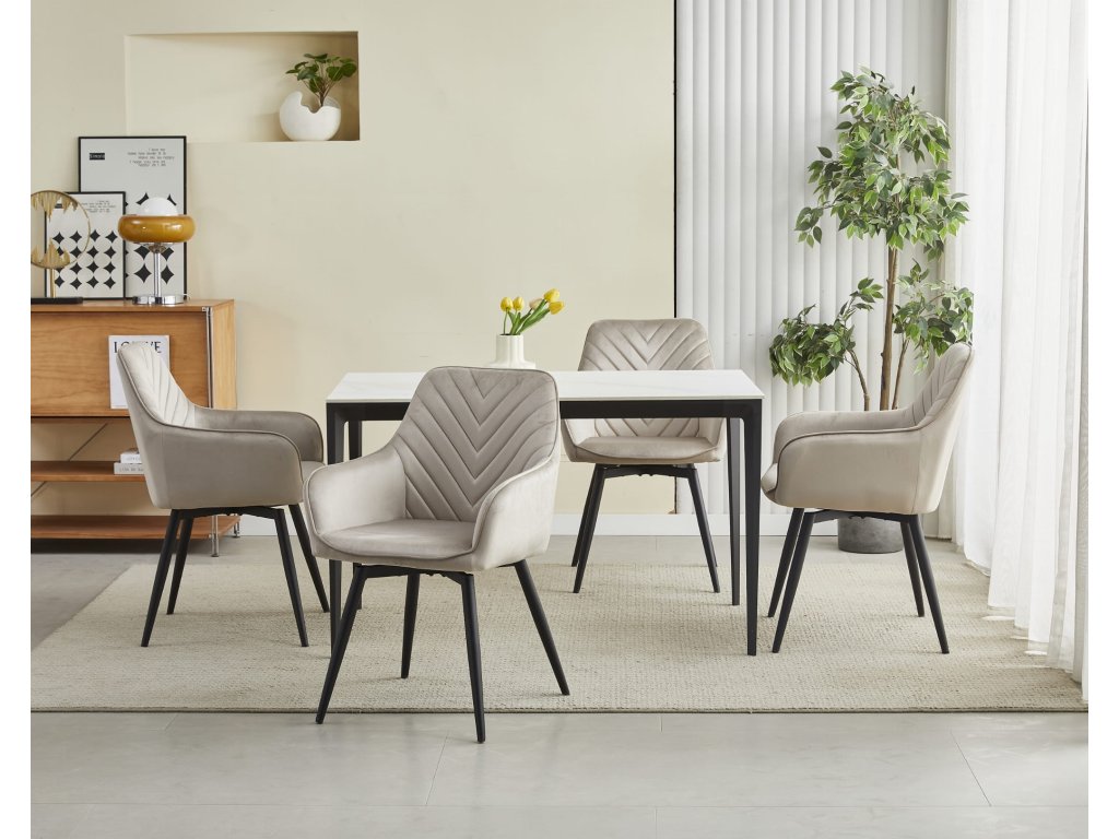 Drehbarer Esszimmerstuhl beiger Velours Nana