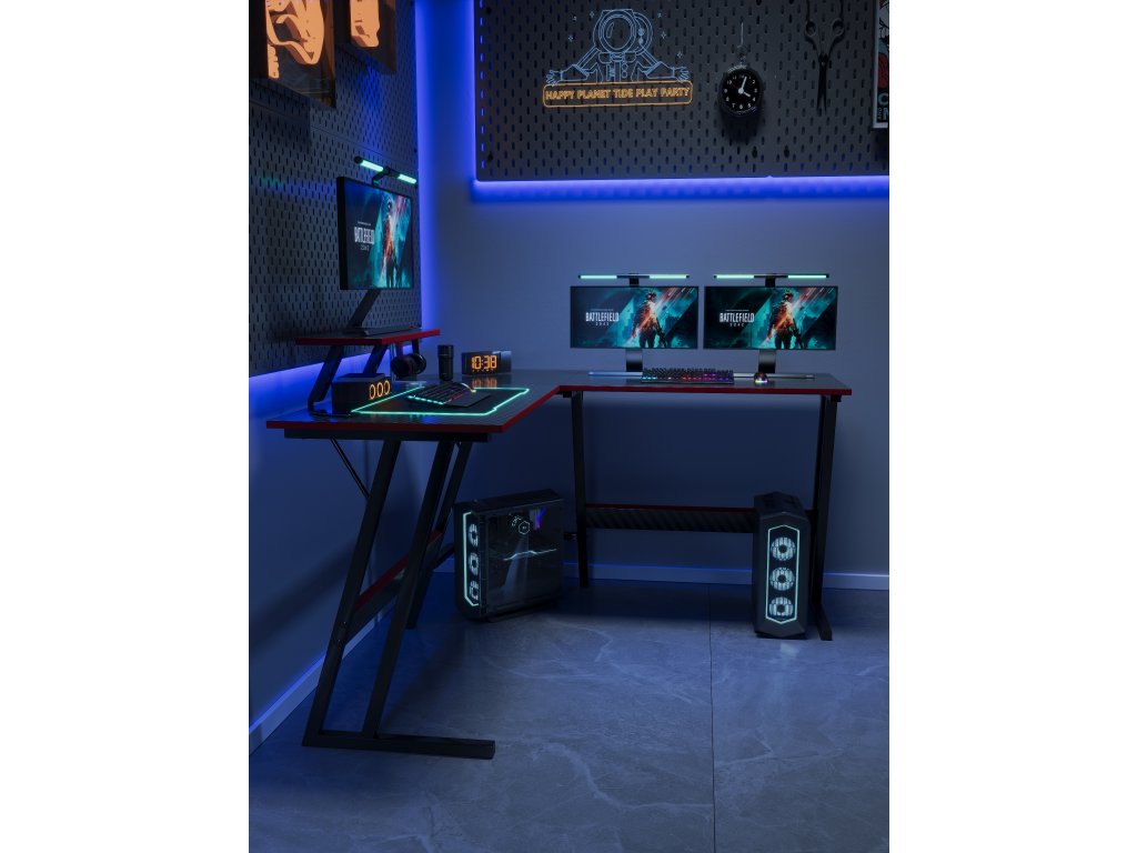 Stört es Sie, dass Ihr Tisch nicht für alle Spiele, das Lernen und die Arbeit ausreicht? Der Eck-Gaming-Tisch 130 cm bietet die Lösung: Einen geräumigen und stabilen Platz, der modernes Design mit praktischen Details vereint. Er verwandelt Ihr Zimmer in einen Ort zum Konzentrieren, Entspannen und Spielen.