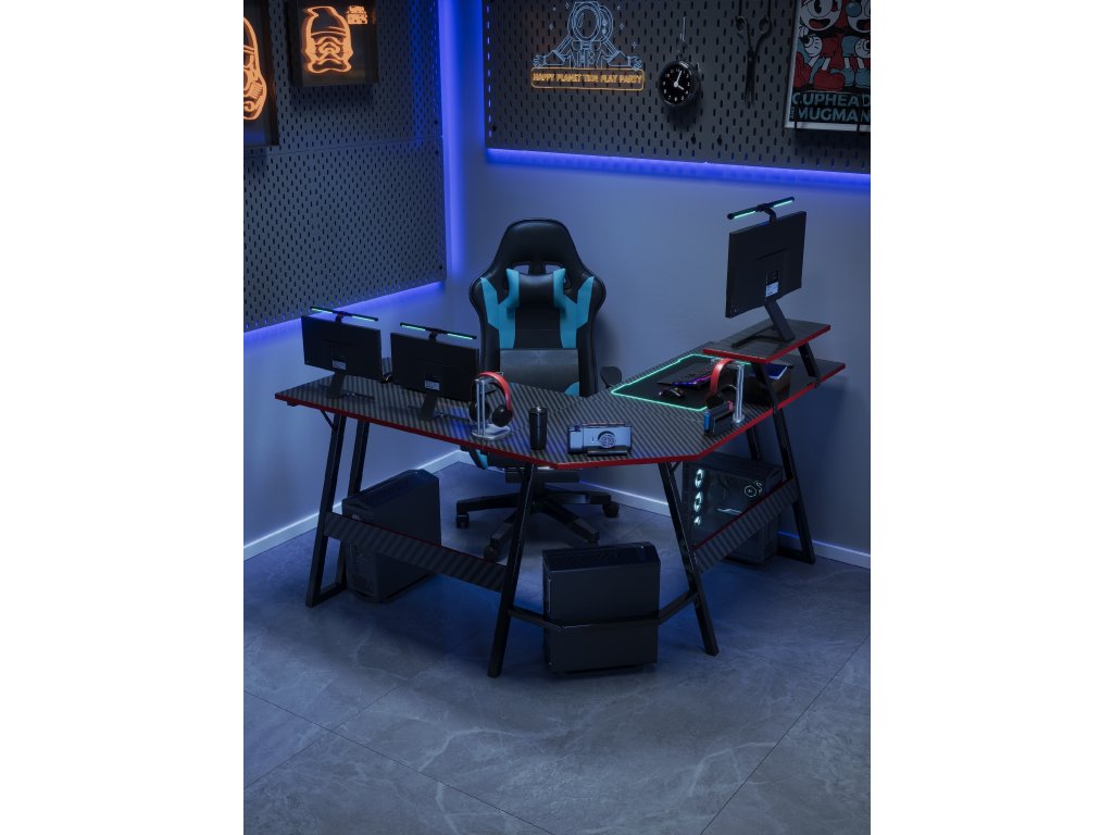 Die Carbonstruktur-Oberfläche ist leicht zu reinigen und behält auch bei häufiger Nutzung ihr modernes Aussehen. Der Tisch ist ideal für Gamer, Jugendliche und Homeoffice-Arbeiten und bietet somit eine universelle Lösung für jeden Haushalt.