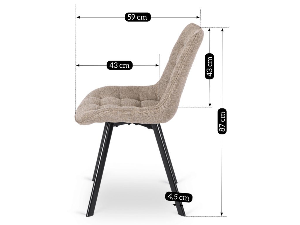 Der Stuhlrahmen besteht aus robustem Metall, genauer gesagt aus schwarzem Stahl mit Pulverbeschichtung, die sowohl Stabilität als auch ein modernes Erscheinungsbild gewährleistet. Die Konstruktion ist auf eine maximale Belastung von 120 kg ausgelegt und vereint Ästhetik mit Praktikabilität.
