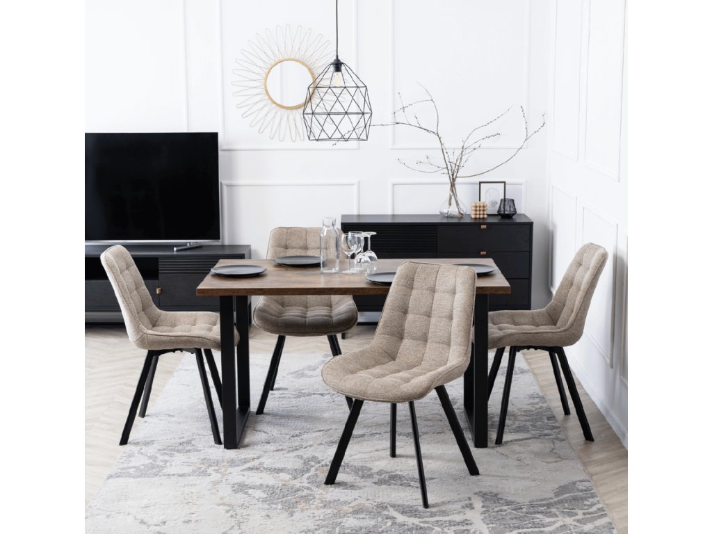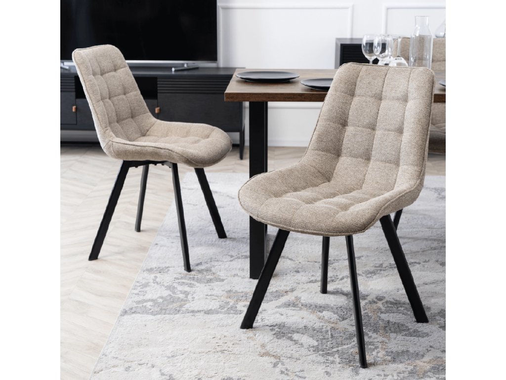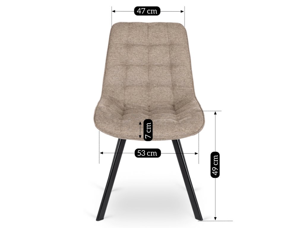 Der Esszimmerstuhl Rick besteht aus erstklassigem Material und weichem Stoff, der nicht nur angenehm anzufassen ist, sondern auch besonders widerstandsfähig gegen den täglichen Gebrauch. Das luxuriöse Material wird durch stilvolle Steppnähte ergänzt, die seine Eleganz unterstreichen. Sitzfläche und Rückenlehne sind mit weichem Schaum gepolstert, der maximalen Komfort beim Sitzen bietet, auch während langer Mahlzeiten.