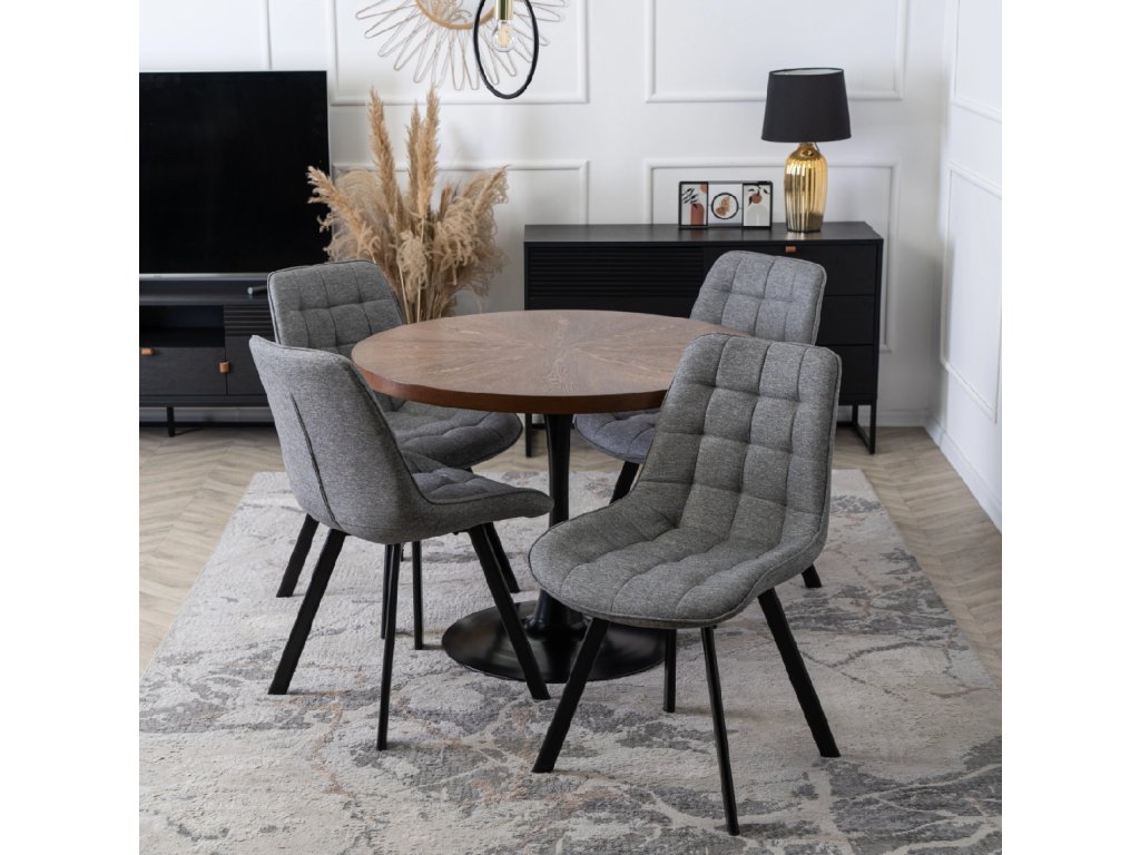 Der Esszimmerstuhl Rick ist aus erstklassigem Material und weichem Stoff gefertigt, der nicht nur angenehm anzufassen, sondern auch besonders widerstandsfähig gegen den täglichen Gebrauch ist. Das luxuriöse Material wird durch stilvolle Steppnähte ergänzt, die seine Eleganz unterstreichen. Sitzfläche und Rückenlehne sind mit weichem Schaum gepolstert, der maximalen Komfort beim Sitzen bietet, auch während langer Mahlzeiten.