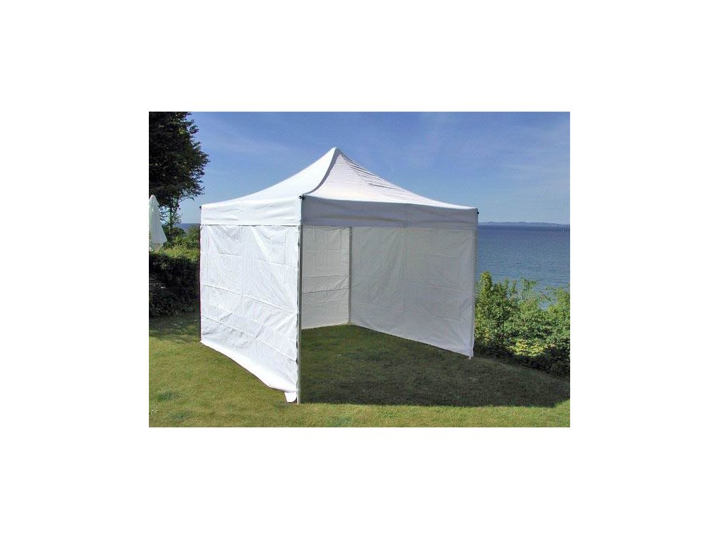 Schnell faltbares Garten Faltzelt geeignet für Geburtstagsfeiern, Partys, Catering-Events, Auto-Moto-Sport, Festivals, Konzerte, Werbeagenturen, Freiwillige Feuerwehren. Die Ganzmetall Konstruktion garantiert eine ausreichende Festigkeit.