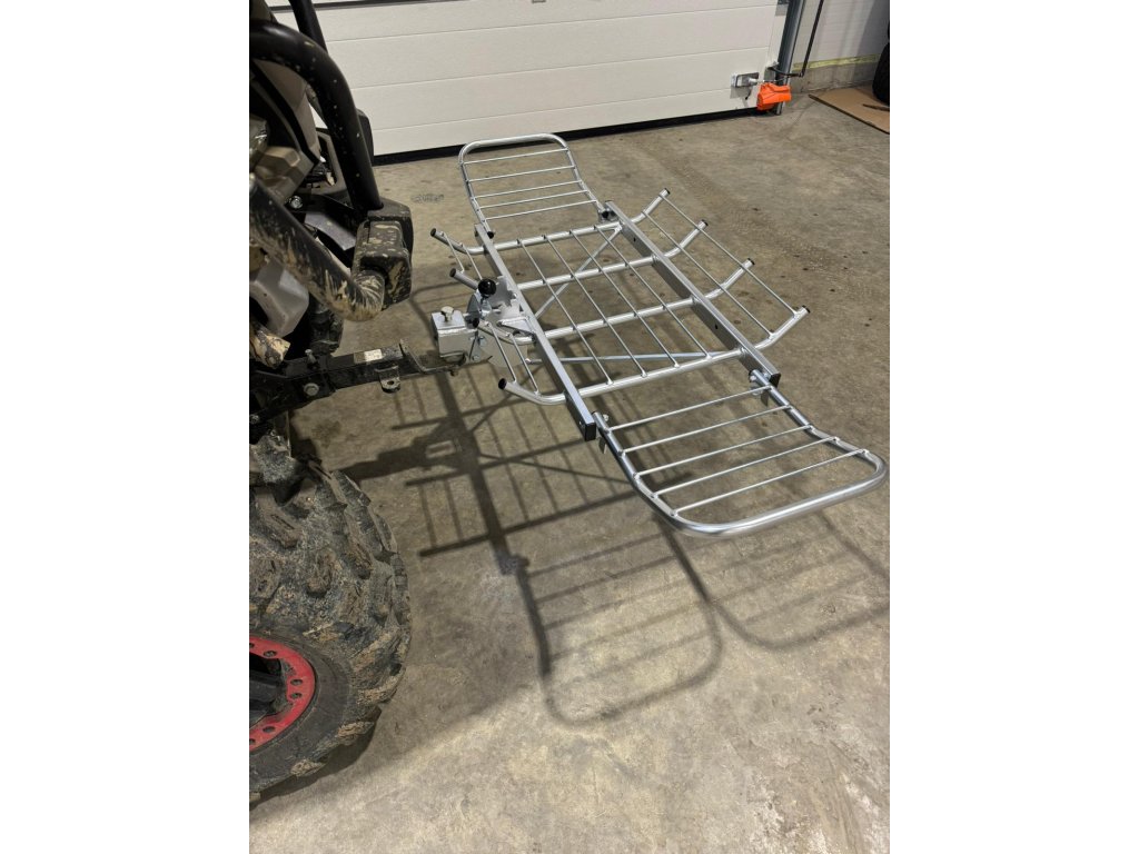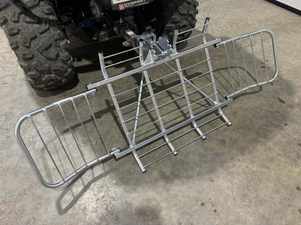 Heckträger für Wildtransport, Material: verzinkter Stahl, Tragfähigkeit: 150 kg, Gewicht: 14,5 kg, zusammengeklappt: 82 x 70 x 20 cm, auseinandergeklappt: 145 x 70 x 20 cm